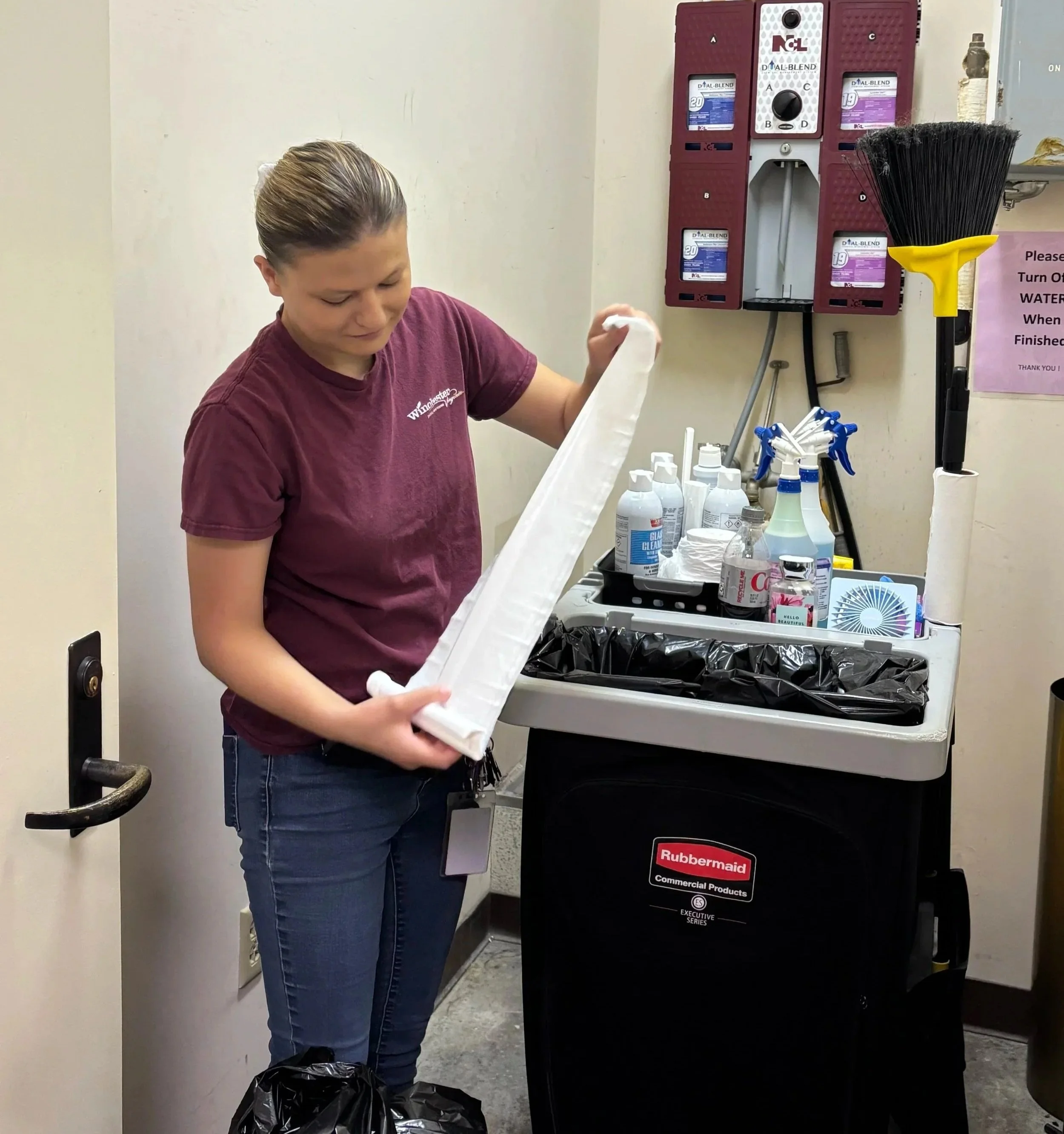 At NW Works, opportunities for advancement and workforce development are key for the people we serve. Maddie, a Project SEARCH graduate and team member who works in the community earned a promotion that came about thanks to her hard work, diligence, and support from her job coach, Caitlin. Maddie works for the City of Winchester as a Custodian and joined the team in August of 2023.
